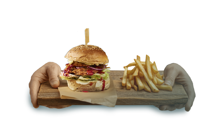 burgers, sandwiches, wraps, loaded fries,or on a sharing patter